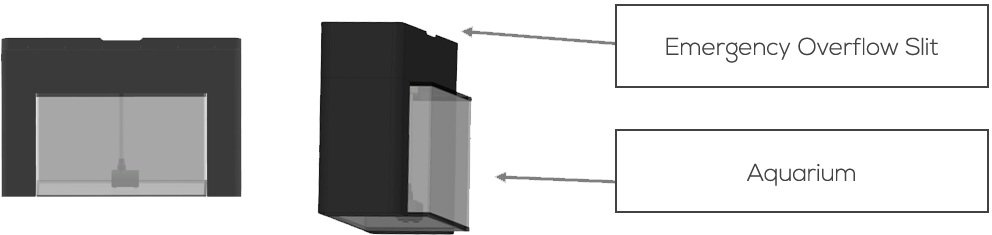 IMPORTANT: One side of your grow-bed, a short section of the wall of the bed is lower. This provides an emergency water overflow back into the tank should your return drains become clogged. You can place the overflow slit toward the front or rear of the aquarium, but make sure it faces the side where you want the gap between the edge of the grow bed and the edge of the tank (see fig.). Even with the emergency overflow, check your drains for debris and build-up periodically.