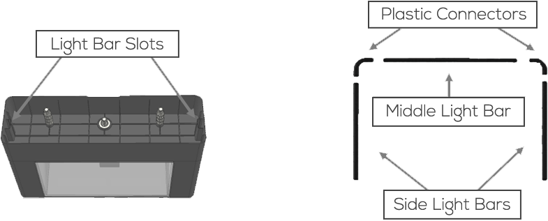 9. While you can attach the light bar at any time, it’s easier to attach it before you add the clay pebbles to the grow-bed. Simply slide the 2 side light-bars inside the left and right ends of the grow-bed. Next, attach the plastic connectors on each end and then connect the ends together with the middle light-bar piece with the drilled holes. Lastly, screw on the light-bar hooks and add a grow light of your choice. TIP: If you decide not to use your light-bar when setting up your Garden, leave the foam plugs inside the light-bar slots to ensure pebbles don’t enter.